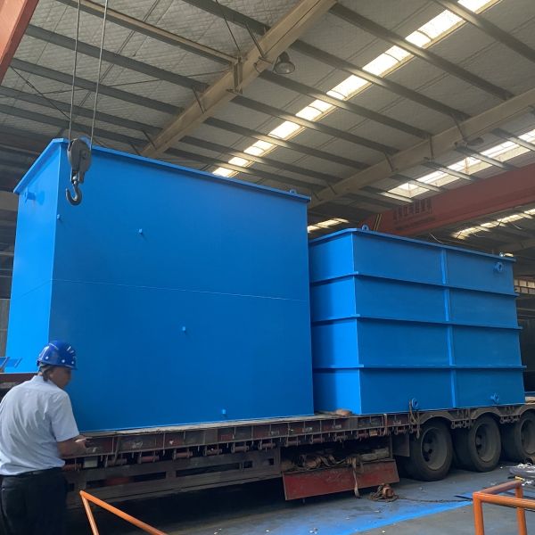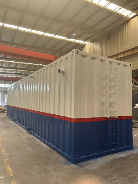 這個即將發貨的生活污水處理設備,處理的是廠區生活污水,因為這是一個小廠區,所以說設備比較小,每小時的處理量是8噸,因為這個廠區還有一部分的工業廢水,所以說上了我們這個設備,通過我們這個設備處理完以后,