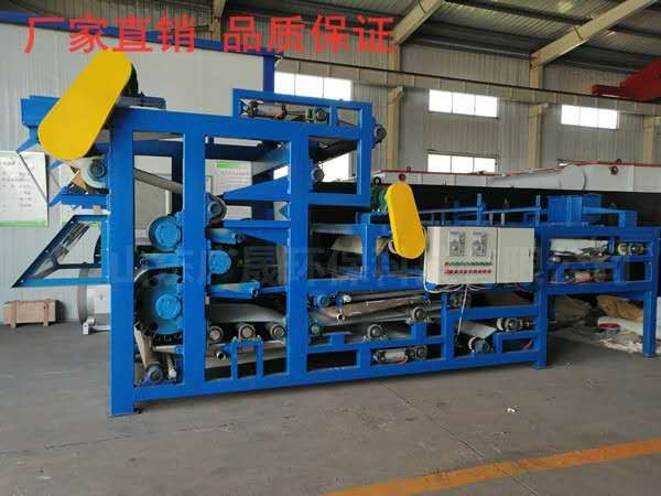 一、產品介紹 洗沙泥漿脫水設備是通過兩條濾帶纏繞在一系列順序排列、大小不等的輥輪上,利用濾帶間的擠壓和剪切作用,來脫除料漿中水分的一種壓濾設備,具有