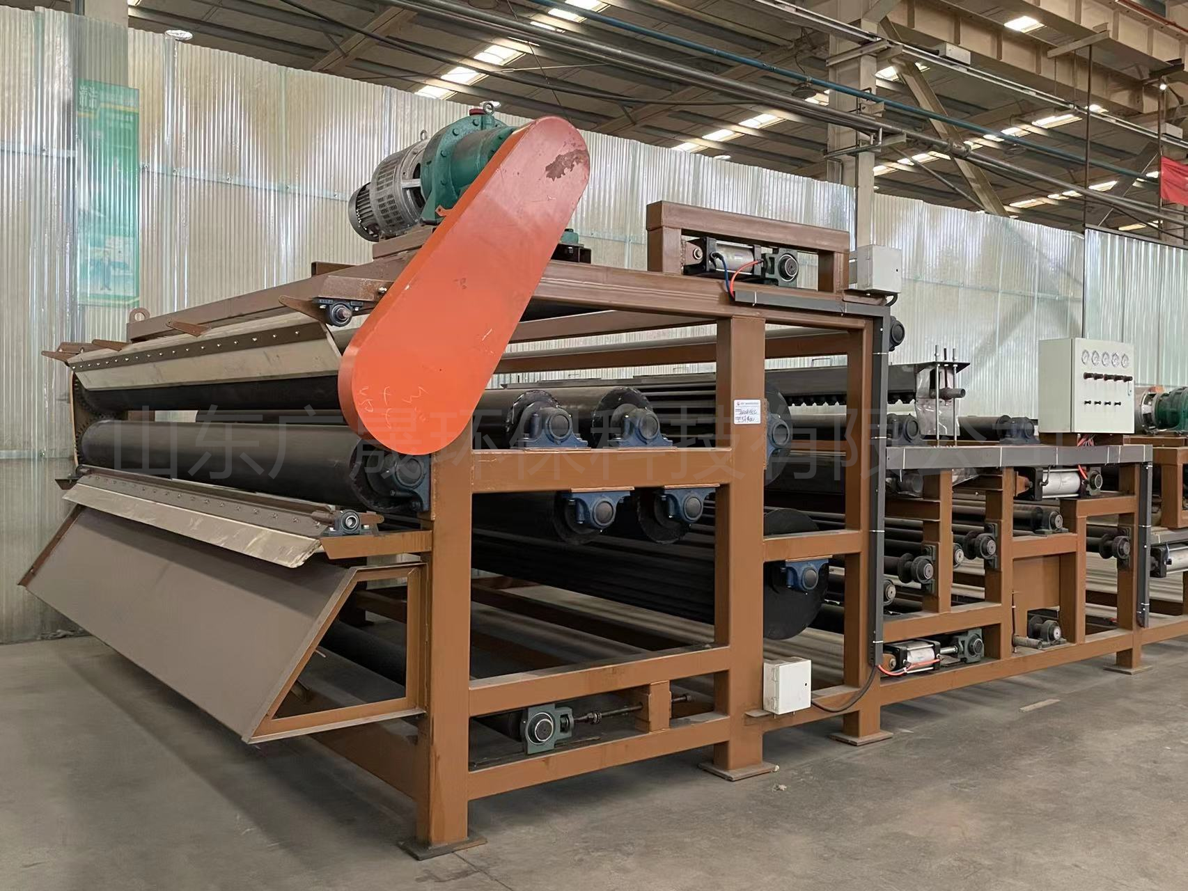 礦山尾礦廢水處理設備是通過兩條濾帶纏繞在一系列順序排列、大小不等的輥輪上,利用濾帶間的擠壓和剪切作用,來脫除料漿中水分的一種壓濾設備,具有著能連續(xù)作業(yè)、自動化程度高、節(jié)能、使用維護方便等優(yōu)點,是一種進行污泥脫水減量化處理的理想設備。