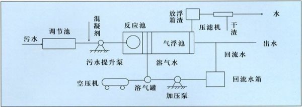 屠宰廠污水處理設備的工作原理是在一定的壓力(0.35~0.45Mpa)下使適量空氣與部分回流水在溶氣罐內形成飽和溶氣載體,經釋放器驟然減壓而獲得大量微細氣泡,迅速粘附于水中流動顆粒、乳化油、澡類和經混凝反應的絮體上,造成絮體比重小于水的狀態(tài),被強制迅浮于水面,從而獲得固液分離。