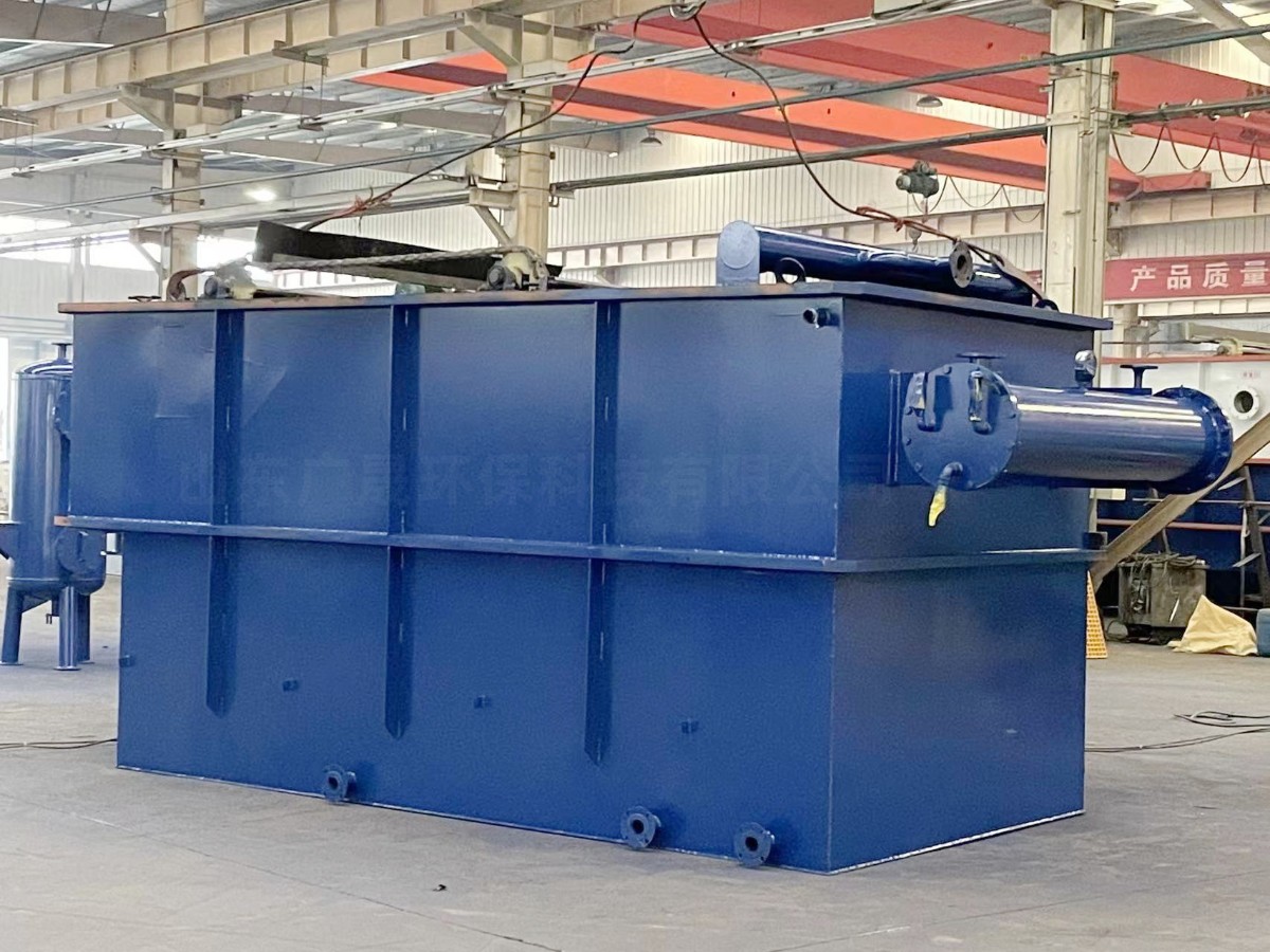 溶氣罐產(chǎn)生溶氣水,溶氣水通過釋放器減壓釋放到待處理的水中。溶解在水中的空氣從水中釋放出來,形成20-40um的微小細泡,微氣泡同污水中的懸浮物結(jié)合,使懸浮物比重小于水,并逐漸浮到水面形成浮渣。水面上備有刮板系統(tǒng),將浮渣刮入污泥池。清水從下部經(jīng)溢流槽進入清水池。