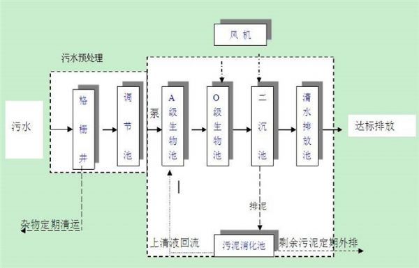 沉淀池污泥采采用氣提設備提至污泥池,同時可根據實際水質情況將污泥部分提至A級生化池進行污泥回流,增加O級生化池中的污泥濃度,提高去除效率。