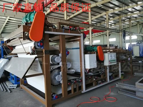 絮凝對污泥進行合理的調質處理,利用重力脫水,機械擠壓脫水原理脫除了污泥中的水分,使污泥以濾餅狀態排出,可將各種工業污泥經重力脫水后得到高質量的泥餅,在壓濾過程中可迅速脫水,后面漸小的壓輥排列以及濾帶接觸角度的改變,確保壓力和剪切的組合,從而大大提高泥餅含固率和脫水效率,獨特設計的電磁調偏和張緊系統解決了設備使用中的一切困難。洗沙泥漿壓濾機是一種連續工作的脫水設備,其結構簡單,操作方便。目前已被廣泛用于處理各種污泥、選煤產品、濕法冶金的殘渣、管道輸送、過濾金屬精礦的物料等。