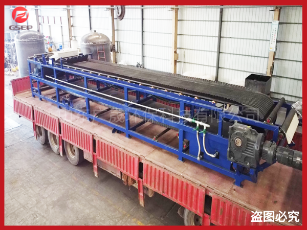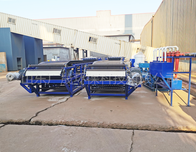 卸除濾餅后濾布經清洗后獲得回用,再經過一組支撐輥和糾偏裝置重新進入過濾區,開始進入新一過濾周期。橡膠帶式真空過濾機實現了真正意義上的連續運行、連續過濾,物料從進料、脫水、卸渣到濾布清洗,可以不間斷的連續進行。