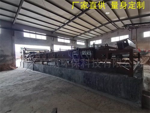 泥漿處理裝置是通過(guò)兩條濾帶纏繞在一系列順序排列、大小不等的輥輪上,利用濾帶間的擠壓和剪切作用,來(lái)脫除料漿中水分的一種壓濾設(shè)備,具有著能連續(xù)作業(yè)、自動(dòng)化程度高、節(jié)能、使用維護(hù)方便等優(yōu)點(diǎn),是一種進(jìn)行污泥脫水減量化處理的理想設(shè)備。