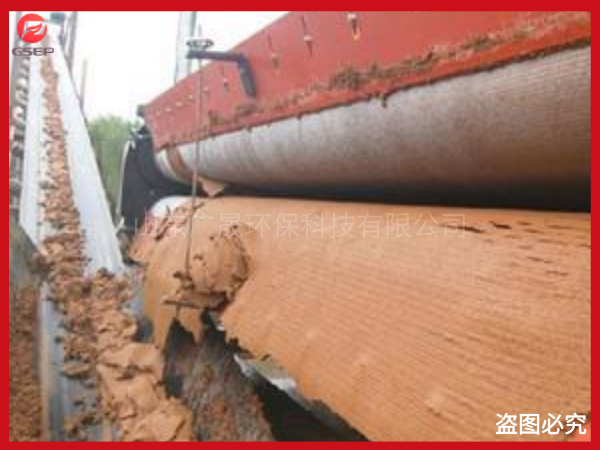 在重力的作用下自由水透過濾網背面而滲出分離,形成不流動狀態的泥漿,達到壓榨脫水區實施較大壓力條件,然后隨著網帶的移動而夾持在上下兩條網帶之間,經過具有可調張緊力的過濾帶及直徑逐漸遞減的轉輥和對壓輥,實施連續增加的緩慢的對輥擠壓力、剪切力作用。