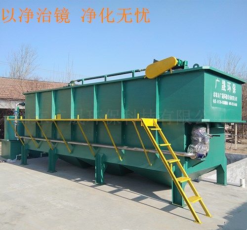 (2)氣浮機(jī):經(jīng)加藥反應(yīng)后的污水進(jìn)入氣浮的混合區(qū),與釋放后的溶氣水混合接觸,使絮凝體粘附在細(xì)微氣泡上,然后進(jìn)入氣浮區(qū)。絮凝體在氣浮力的作用下浮向水面形成浮渣,下 層的清水經(jīng)集水器流至清水池后,一部分回流作溶氣使用,剩余清水通過(guò)溢流口流出。氣浮池水面上的浮渣積聚到一定厚度以后,由刮沫機(jī)刮入氣浮機(jī)污泥池后排出,氣浮底部的淤泥定時(shí)間用抽糞車(chē)吸出外運(yùn),或者是打開(kāi)排污閥自流入污泥收集池,用污泥脫水機(jī)脫水處理,從而減少二次污染,安全可靠。